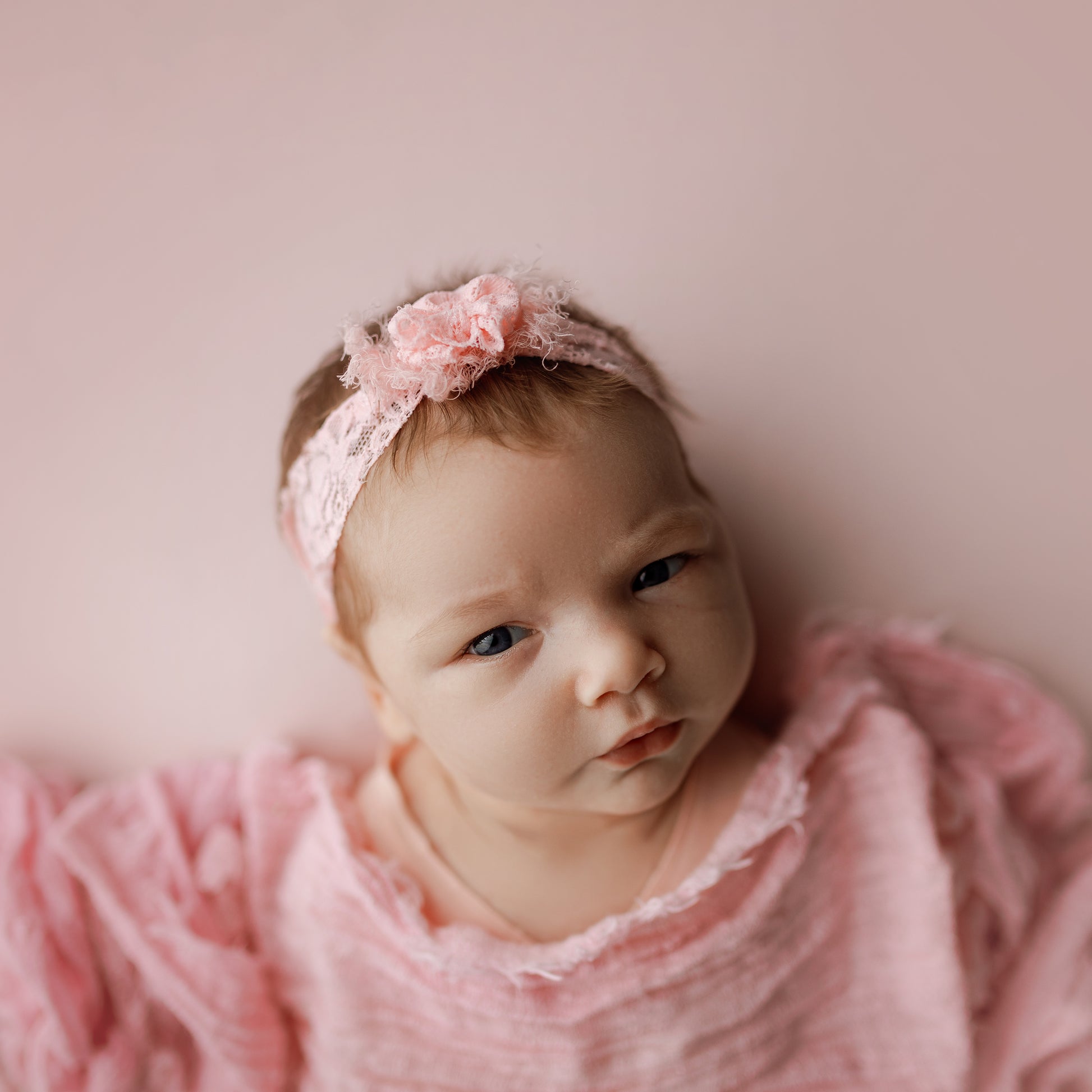 Soft, stretchy, and adorable, the Lacey Bow Band adds the perfect delicate detail to your newborn sessions. Crafted from beautiful, stretchy lace and adorned with a dainty bow, this headband is designed to fit newborns through one year. The tie-back design ensures a snug, adjustable fit for every little one. Plus, each band coordinates with The Newborn Nerds seamless paper collection, making monochromatic setups effortless. Whether you’re going for soft neutrals or bold pops of color, the Lacey Bow Band is a timeless addition to your prop collection.