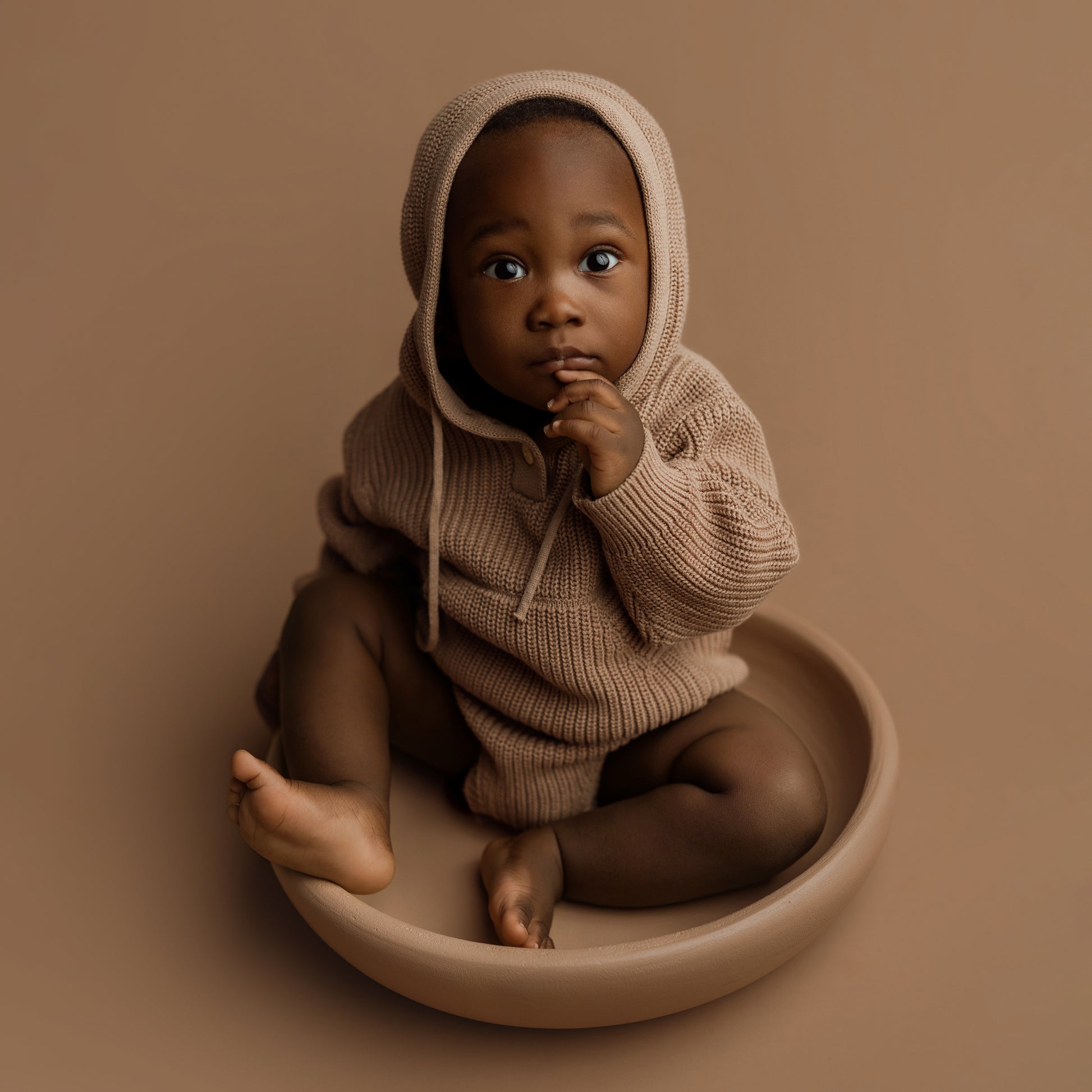 Their smooth, curved design creates a cozy nest-like feel, making them ideal for comfortably posing little ones. The lightweight yet sturdy construction ensures easy handling and storage, while the hand-painted finish adds a soft, matte look with minimal glare.